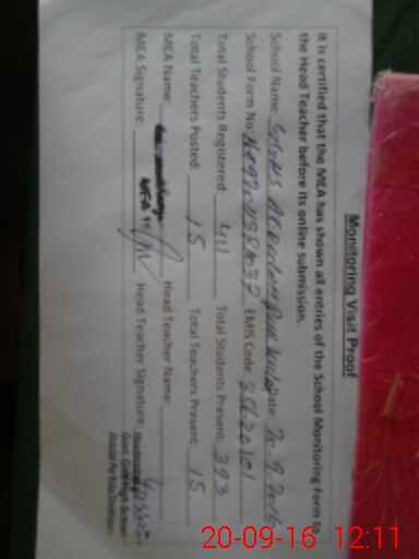 | Attendance Register | Head Teacher | MEA with School | Visit Proof |