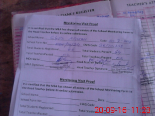 | Attendance Register | Head Teacher | MEA with School | Visit Proof |