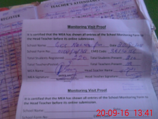| Attendance Register | Head Teacher | MEA with School | Visit Proof |