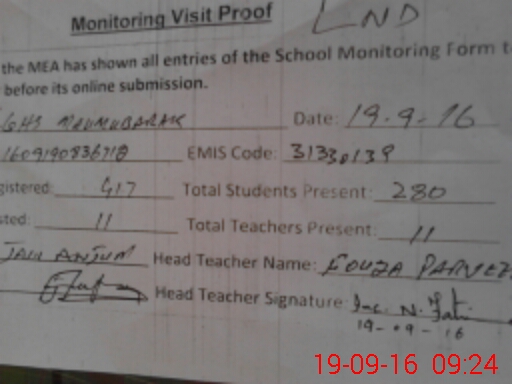 | Attendance Register | Head Teacher | MEA with School | Visit Proof |
