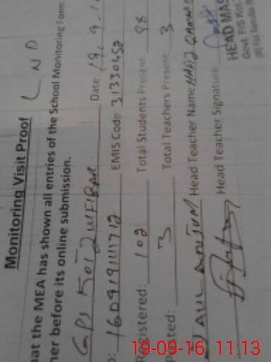 | Certified that this School was Inspected by the Undersigned MEA/DMO Today and the Information Stated Above is as Per Record. | |||||