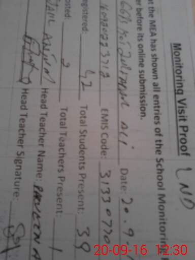 | Certified that this School was Inspected by the Undersigned MEA/DMO Today and the Information Stated Above is as Per Record. | |||||
