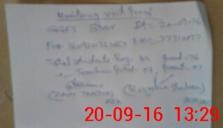| Monitoring Date: 20-09-2016 | Start Time: 20-09-2016 12:50 PM | End Time: 20-09-2016 01:30 PM | Name of MEA: ZA**** ULAB**** (R**** | |