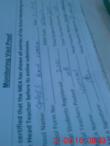 | Certified that this School was Inspected by the Undersigned MEA/DMO Today and the Information Stated Above is as Per Record. | |||||