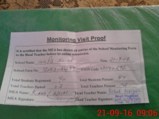 | Attendance Register | Head Teacher | MEA with School | Visit Proof |