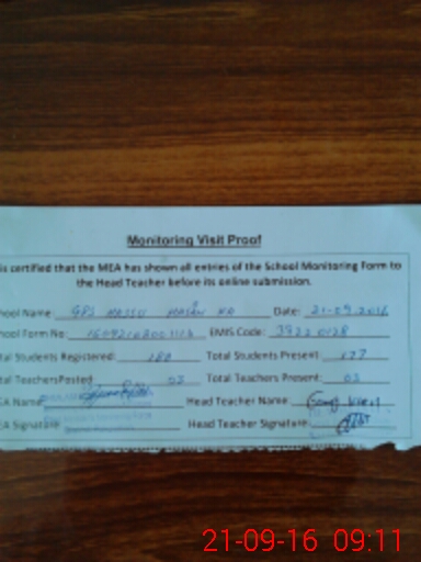 | Attendance Register | Head Teacher | MEA with School | Visit Proof |