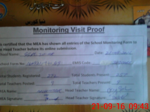 | Attendance Register | Head Teacher | MEA with School | Visit Proof |