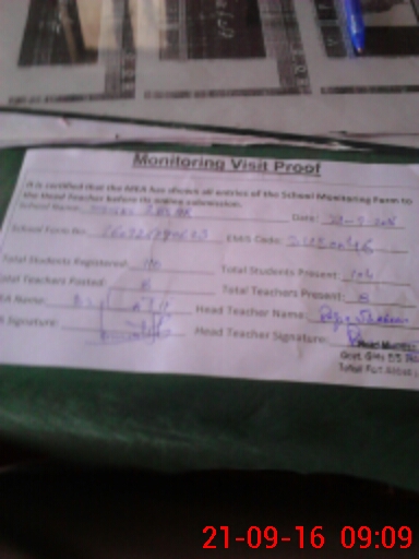 | Name: TA**** IR**** Designation: (School Headmaster's/Headmistress's) Sst Phone/Cell Number: 03**** |