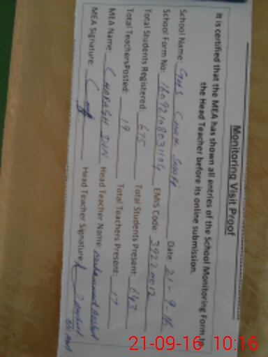 | Certified that this School was Inspected by the Undersigned MEA/DMO Today and the Information Stated Above is as Per Record. | |||||