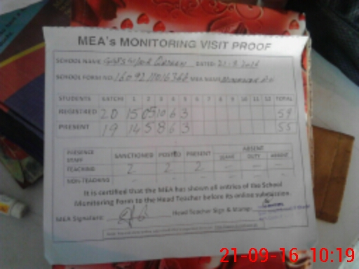 | Attendance Register | Head Teacher | MEA with School | Visit Proof |