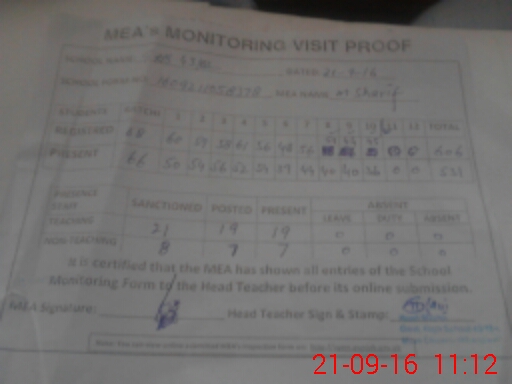 | Certified that this School was Inspected by the Undersigned MEA/DMO Today and the Information Stated Above is as Per Record. | |||||
