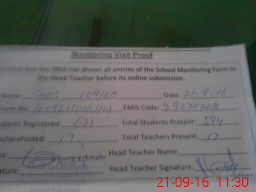 | EMIS Code: 39220208 | Name of School: GHS CHAK NO. 109/ EB | |||