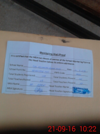 | Attendance Register | Head Teacher | MEA with School | Visit Proof |