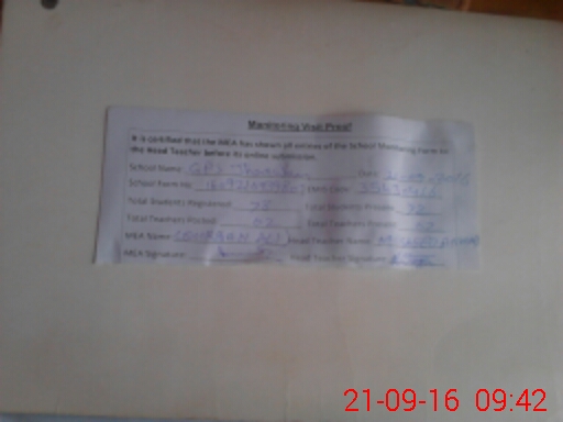 | Attendance Register | Head Teacher | MEA with School | Visit Proof |