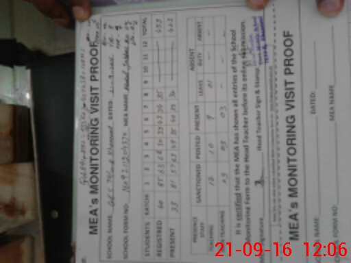 | Certified that this School was Inspected by the Undersigned MEA/DMO Today and the Information Stated Above is as Per Record. | |||||