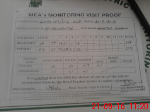 | Attendance Register | Head Teacher | MEA with School | Visit Proof |