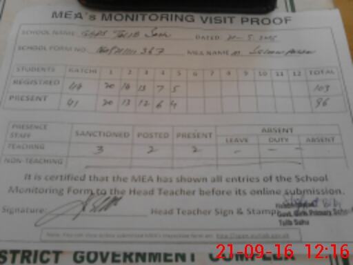 | Certified that this School was Inspected by the Undersigned MEA/DMO Today and the Information Stated Above is as Per Record. | |||||