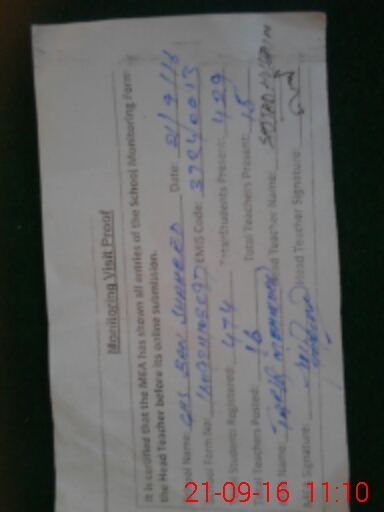 | Attendance Register | Head Teacher | MEA with School | Visit Proof |