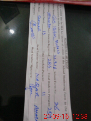 | Name: IJ**** AH**** CH**** Designation: (School Headmaster's/Headmistress's) H M Phone/Cell Number: 03**** |