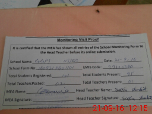 | Attendance Register | Head Teacher | MEA with School | Visit Proof |