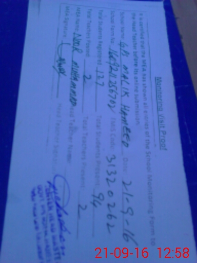| Attendance Register | Head Teacher | MEA with School | Visit Proof |