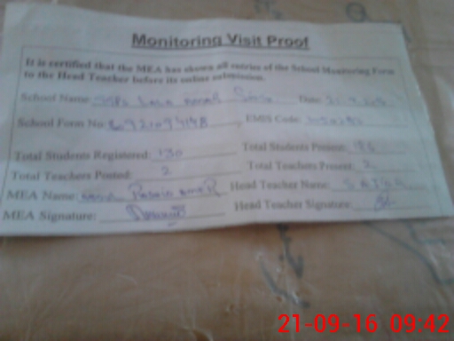 | Attendance Register | Head Teacher | MEA with School | Visit Proof |