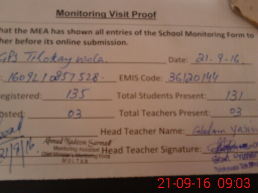 | EMIS Code: 36120144 | Name of School: GPS TILOKAY WALA P/O KHOJA SHUJABAD | |||