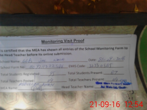 | EMIS Code: 32330585 | Name of School: GGPS JAL WALA | |||