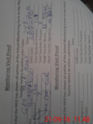 | Attendance Register | Head Teacher | MEA with School | Visit Proof |
