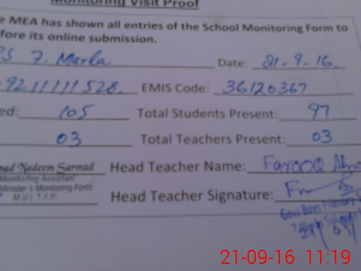 | EMIS Code: 36120367 | Name of School: GPS 7 MARLA SCHEME SHUJABAD | |||