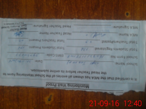 | Attendance Register | Head Teacher | MEA with School | Visit Proof |