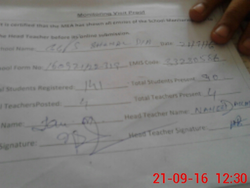 | Name: KA**** AK**** Designation: (School Headmaster's/Headmistress's) PST Phone/Cell Number: 03**** |