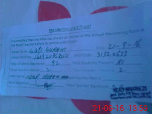 | EMIS Code: 31320633 | Name of School: GGPS GURANI | |||