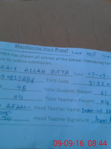| EMIS Code: 31320174 | Name of School: GPS RAIS ALLAH DITTA | |||