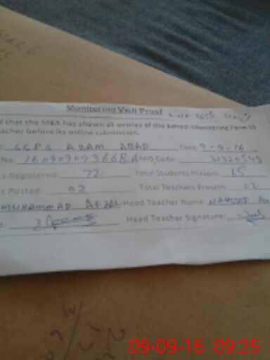 | EMIS Code: 31320543 | Name of School: GGPS AZAM ABAD | |||