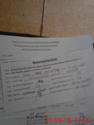 | Attendance Register | Head Teacher | MEA with School | Visit Proof |