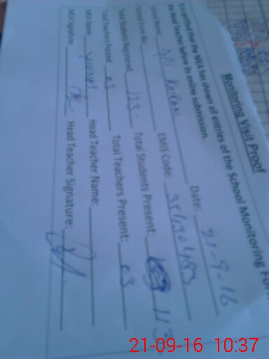 | Attendance Register | Head Teacher | MEA with School | Visit Proof |
