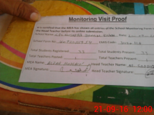 | School Visited by School Health & Nutrition Supervisor (No. of Visits) | Name1: | Shah Muhmmad | Name2: | ||