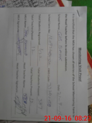 | Attendance Register | Head Teacher | MEA with School | Visit Proof |