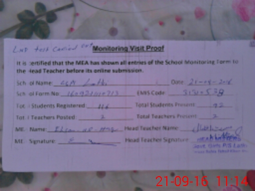 | EMIS Code: 31310538 | Name of School: GGPS LATKI | |||