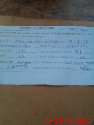 | EMIS Code: 31320494 | Name of School: GGPS RAIS ALLAH DITTA | |||