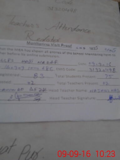 | Attendance Register | Head Teacher | MEA with School | Visit Proof |