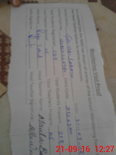 | Name: MU**** JA**** Designation: (School Headmaster's/Headmistress's) PST/PTC/JV Phone/Cell Number: 03**** |
