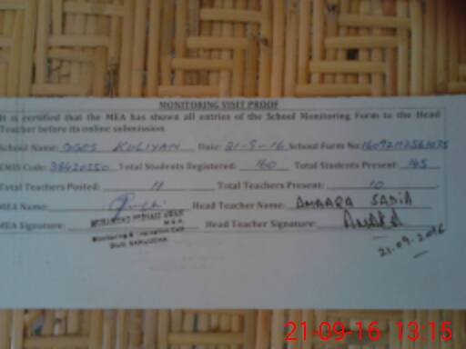| Attendance Register | Head Teacher | MEA with School | Visit Proof |