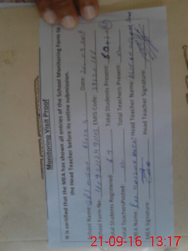 | Attendance Register | Head Teacher | MEA with School | Visit Proof |