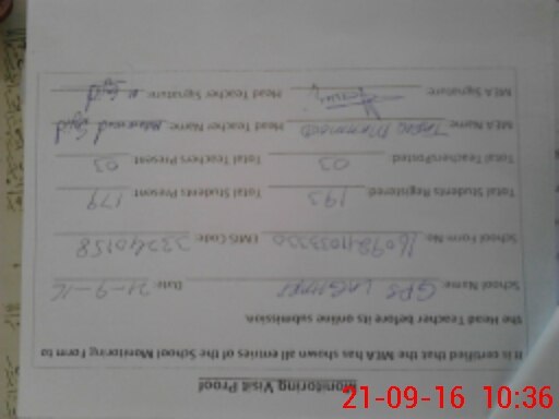 | Name: MU**** SA**** Designation: (School Headmaster's/Headmistress's) PST Phone/Cell Number: 03**** |