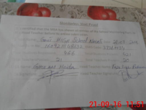 | Certified that this School was Inspected by the Undersigned MEA/DMO Today and the Information Stated Above is as Per Record. | |||||