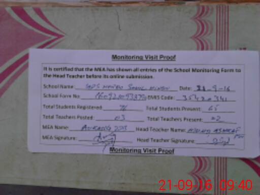 | Certified that this School was Inspected by the Undersigned MEA/DMO Today and the Information Stated Above is as Per Record. | |||||