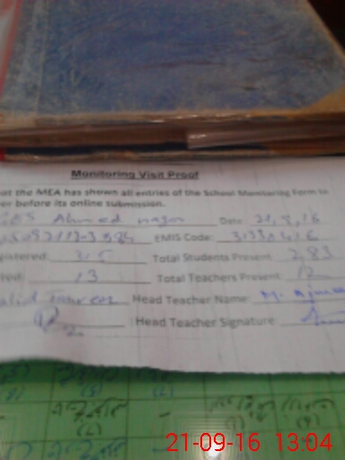 | EMIS Code: 31330416 | Name of School: GHS AHMED NAGAR | |||