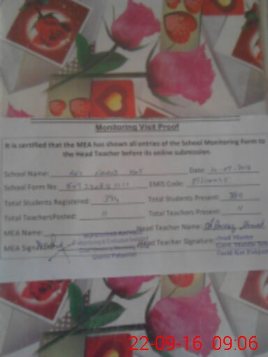 | Certified that this School was Inspected by the Undersigned MEA/DMO Today and the Information Stated Above is as Per Record. | |||||